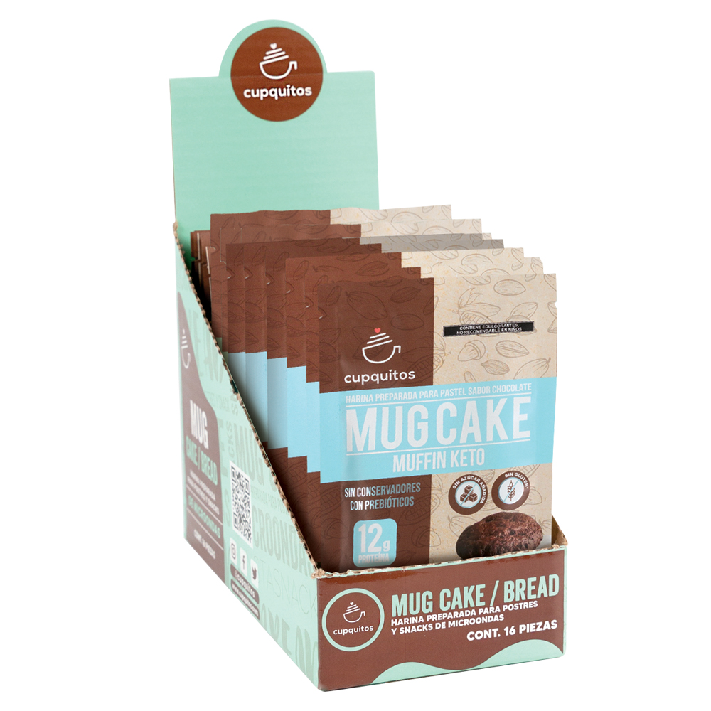 Eritritol (29g/100g), harina de almendra, cocoa, proteína de suero de leche, mín.3,5% de inulina de agave (prebiótico), goma xantana, saborizante artificial, Stevia (15mg/100g), bicarbonato de sodio, mono y diglicéridos de ácidos grasos, polvos para hornear (bicarbonato de sodio, sulfato de aluminio y sodio, carbonato de calcio, fécula de maíz y fosfato monocálcico).